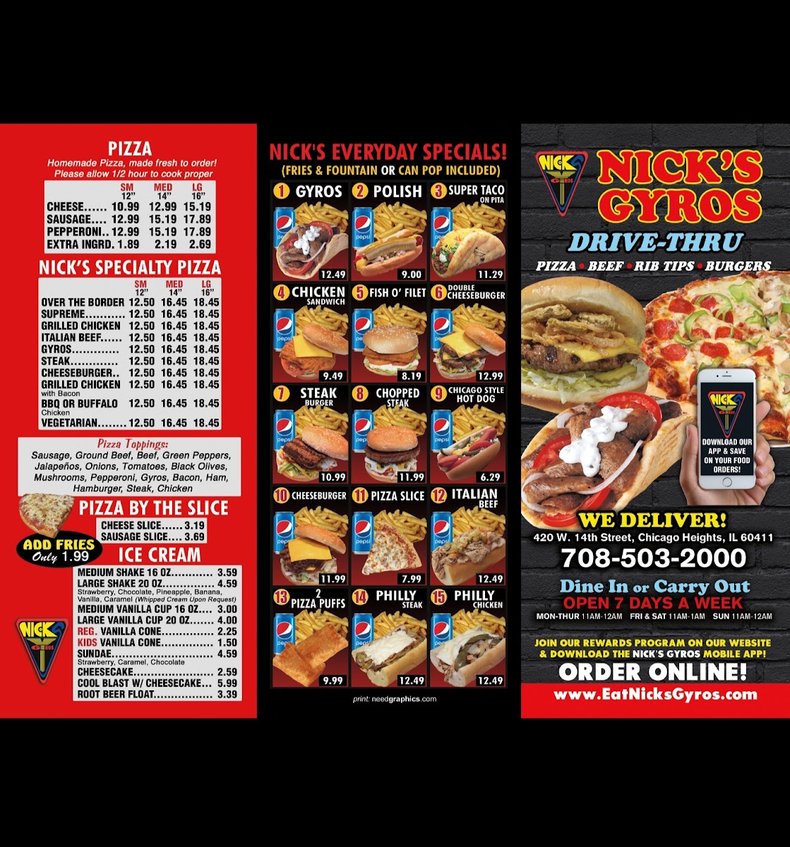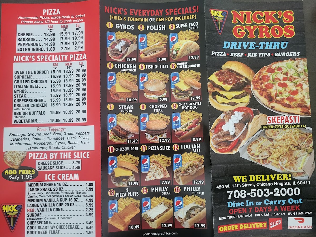 Welcome to Nick's Gyros, where culinary excellence meets convenience! Located conveniently with a drive-through option, Nick's offers a menu that delights both hearty eaters and fast-food enthusiasts alike. Diners rave about their signature gyros, which are praised for their generous portions and bold flavors. Customer MD Kim rates the gyro a solid 8 out of 10, appreciating its taste despite minor dryness.